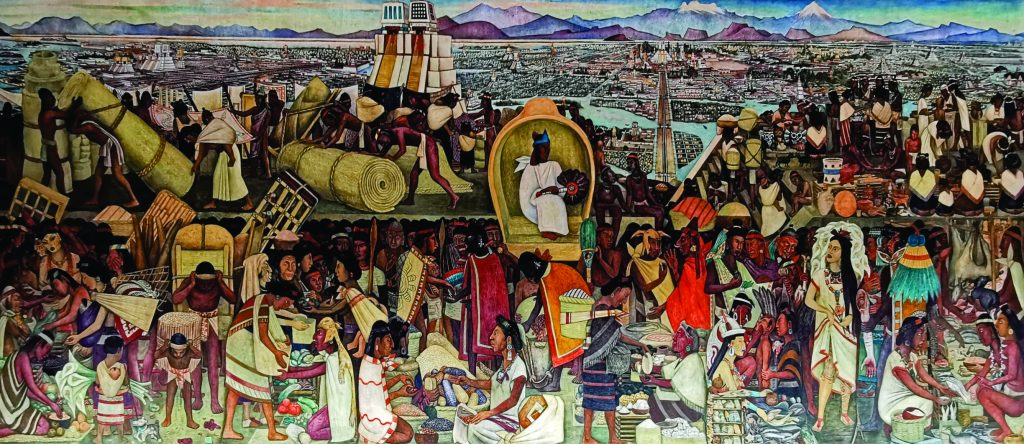 De regreso a México en 1921, e identificado con los ideales revolucionarios mexicanos, Rivera emprendió un gran proyecto: pintar la historia de su pueblo desde la época precolombina hasta la revolución. El abogado, político, escritor, educador, funcionario público y filósofo, José Vasconcelos patrocinó, tras convertirse en Ministro de Educación, un programa muralístico mexicano.